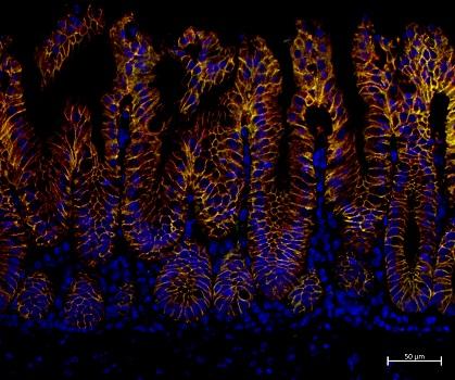 image: E Cadherin and Beta Catenin stained infected mouse colonic tissue.