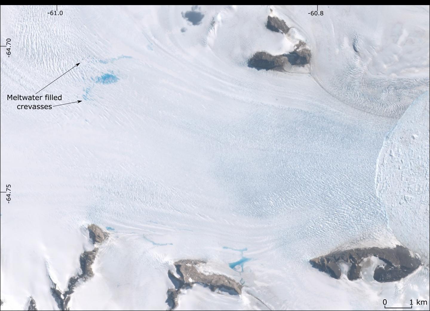 The new research, published today in Nature Communications, shows that accelerations in Antarctic Peninsula glaciers' movements coincide with spikes in snowmelt. This association occurs because surface meltwater penetrates to the ice bed and lubricates glacier flow.