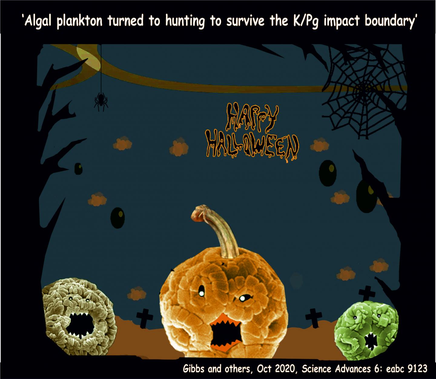 "Mixotrophy was both the means of initial survival and then an advantage after the post-asteroid darkness lifted because of the abundant small pretty cells, likely survivor cyanobacteria," Ridgwell said. "It is the ultimate Halloween story -- when the lights go out, everyone starts eating each other."