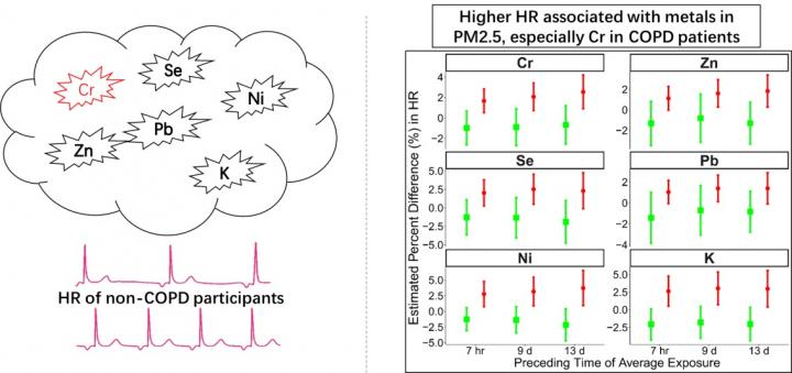 "We observed higher levels of heart rate (HR) associated with exposure to PM2.5 and the metal elements therein. Associations between HR and metals exposure in COPD patients were stronger than those in healthy controls. Exposure to Cr had robust associations with HR, comparing to other metals." said Dr. Ke Gao, the first author for this work.