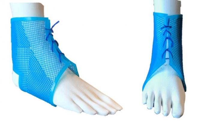image: AM fabricated ankle brace using optimized metamaterial that has tailored mechanical performance.
