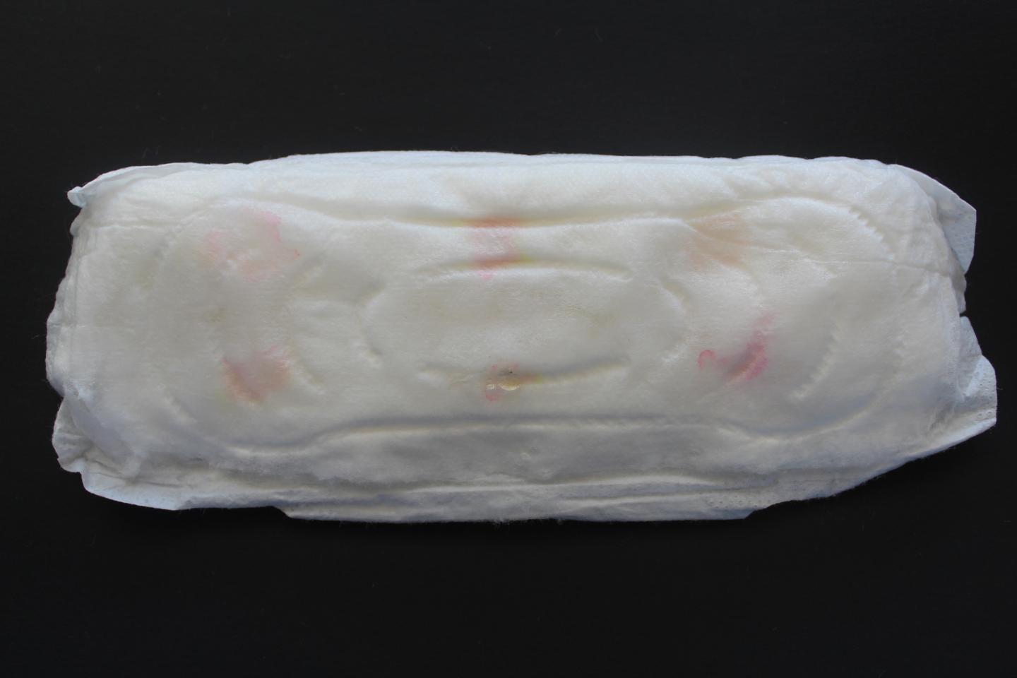 image: Pink areas on a sanitary napkin indicate the presence of C. albicans, which could help women in low-resource settings affordably and discreetly self-diagnose yeast infections.