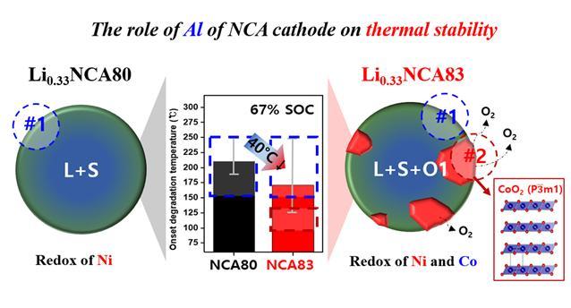 The KIST research team investigated that an increase in nickel compared to the aluminum content in the NCA cathode material improves the battery capacity, but it significantly reduces thermal stability in the upper charging limit (67% reaction of total lithium ions). An analysis showed that there was a lack of aluminum not participating in the redox reaction, and this leads to the formation of a new phase (O1 phase) that can reduce thermal stability during the charging process. The surface of the new unstable phase was found to be the ultimate cause of reduced thermal stability.