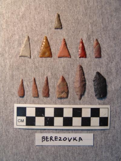 These are stone artifacts, mostly tips for spears and harpoons, found on the Kuril Islands.