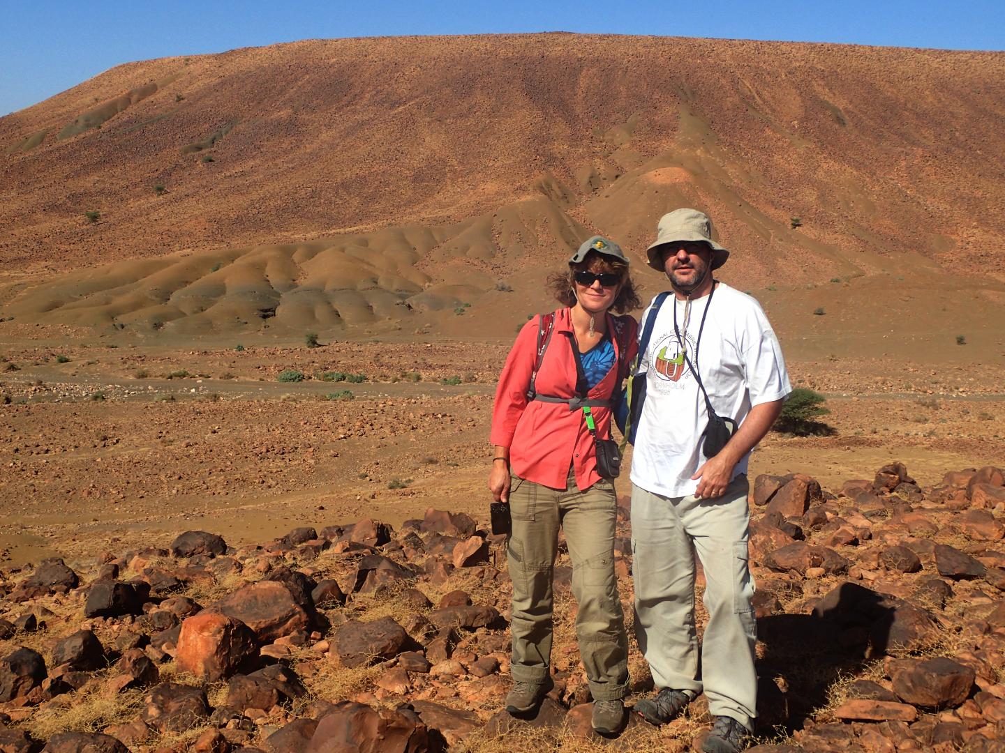 image: USask paleobiologists Gabriela Mángano and Luis Buatois (left to right) in the field in Morocco examining 478 million year-old marine rocks