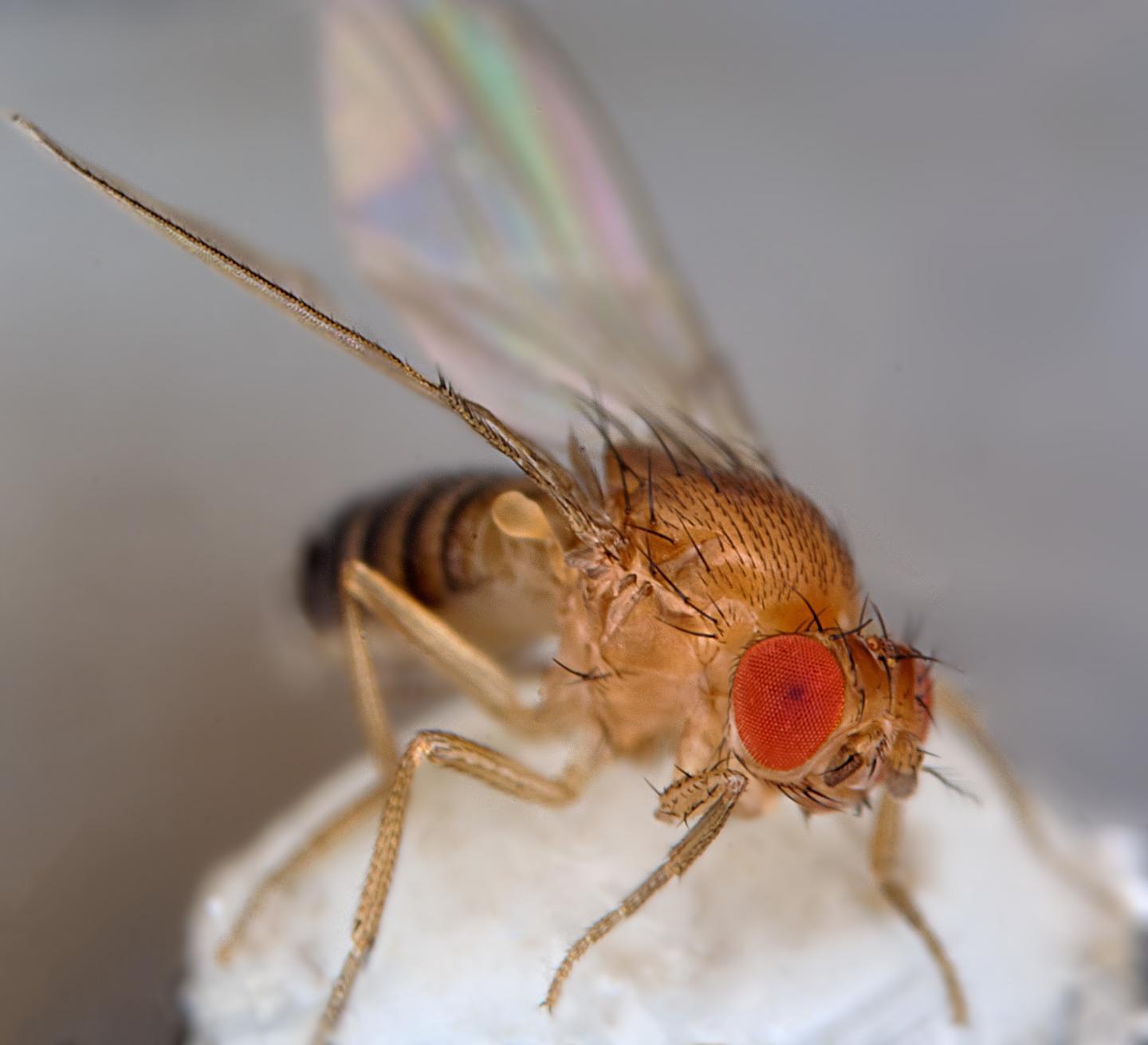 image: Fruit fly: the antennae, that sit between the eyes, function as ears.