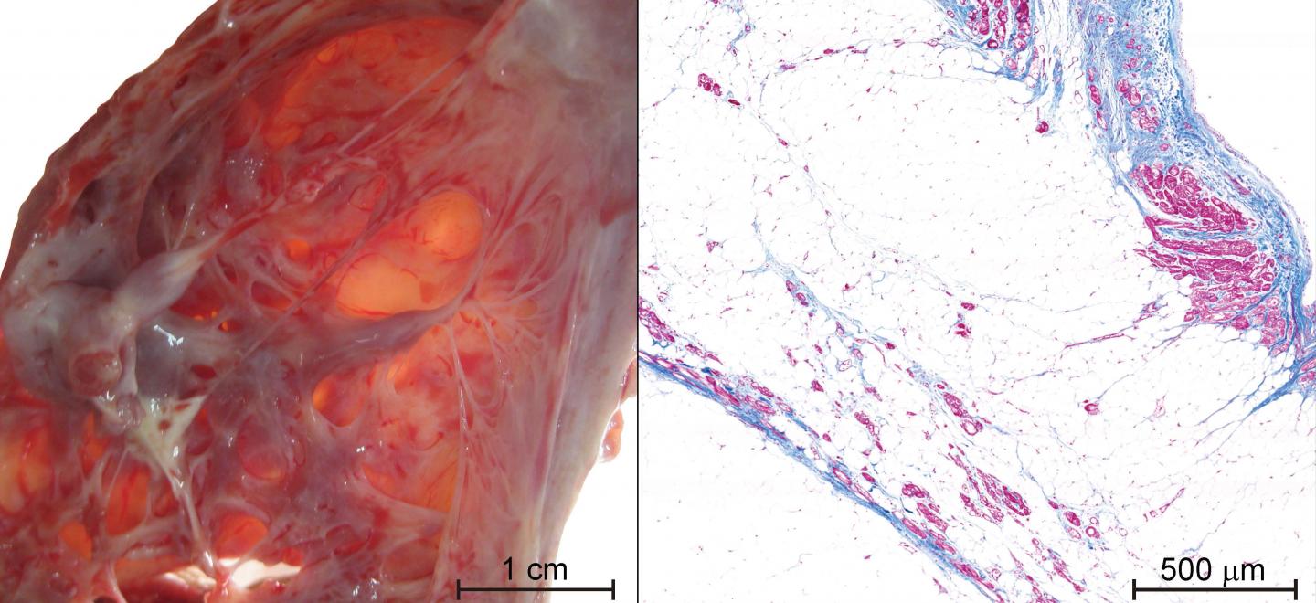 image: Tissue from a heart of a patient with arrhythmogenic cardiomyopathy. This material relates to a paper that appeared in the Feb. 12, 2020, issue of Science Translational Medicine, published by AAAS. The paper, by J.-P. Song at Fuwai Hospital in Beijing, China; and colleagues was titled, " Elevated plasma β-hydroxybutyrate predicts adverse outcomes and disease progression in patients with arrhythmogenic cardiomyopathy."