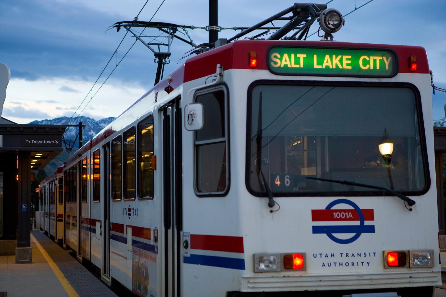 image: A TRAX light rail train in Salt Lake City, Utah.