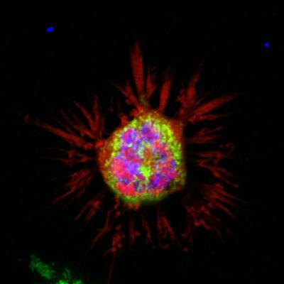 Parkin-expressing cells (red) are undergoing programmed cell death.