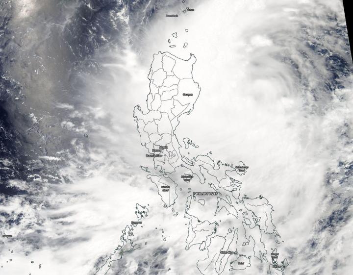 On July 16, the Moderate Resolution Imaging Spectroradiometer or MODIS instrument aboard NASA's Aqua satellite provided a visible image of Danas that showed a large depression the stretched the entire length of the Philippines. Strongest thunderstorms remained off the coast in the image, but the northwestern and western quadrants were already over the Luzon and Visayas regions.