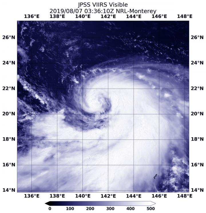 image: NOAA's NOAA-20 polar orbiting satellite passed over the Northwestern Pacific Ocean and captured a visible image of Tropical Storm Krosa on Aug. 7, 2019.