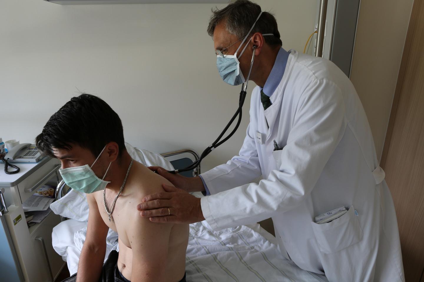 image: Christoph Lange (left) examines a patient.