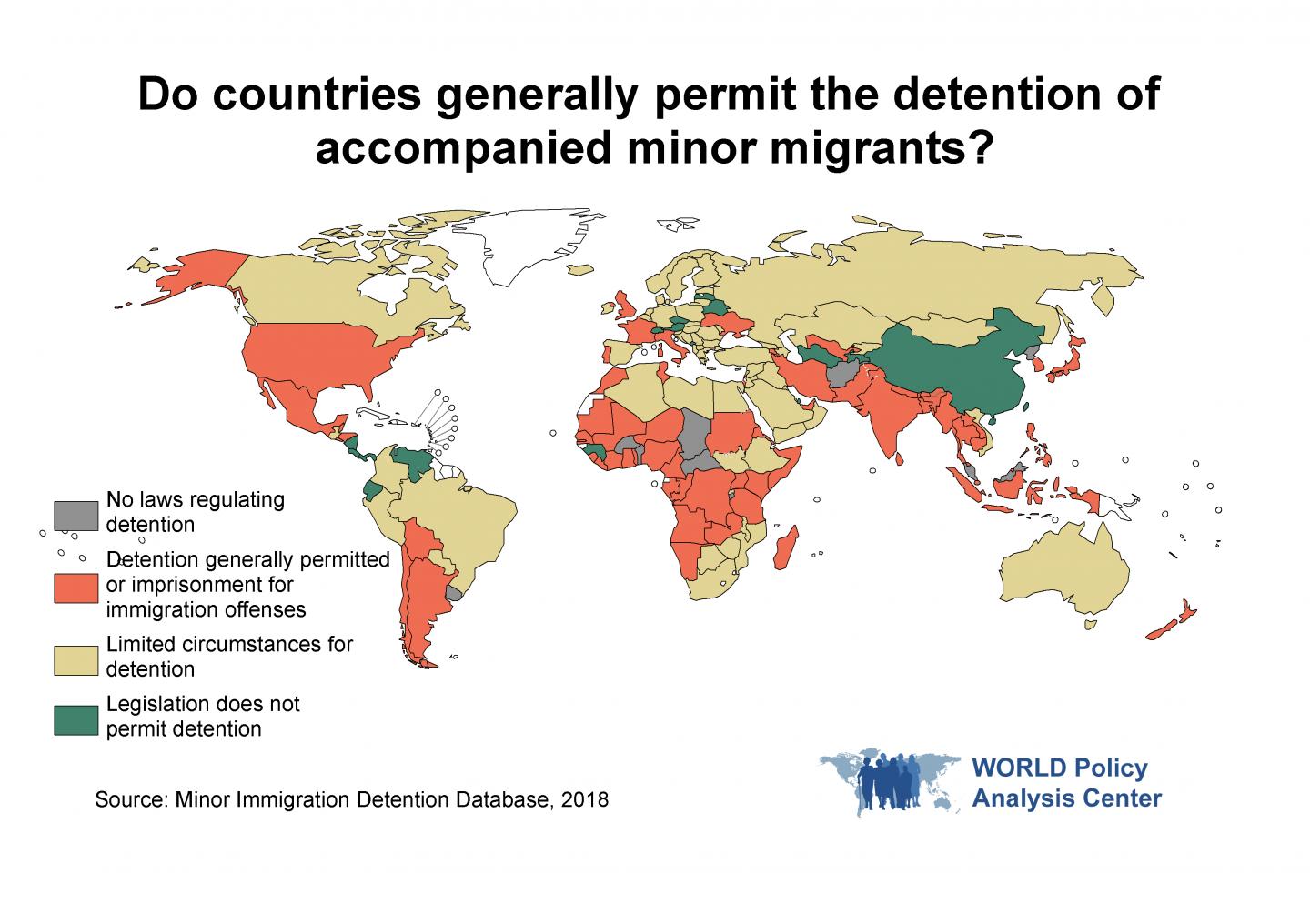 image: Map showing existing laws regarding the detention of minor migrants across the world