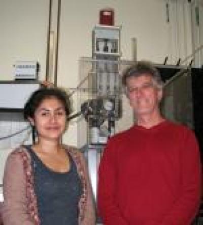 Annia Rodriguez and John Perona stand in front of the Rapid Quench Flow Machine used in the experiments.