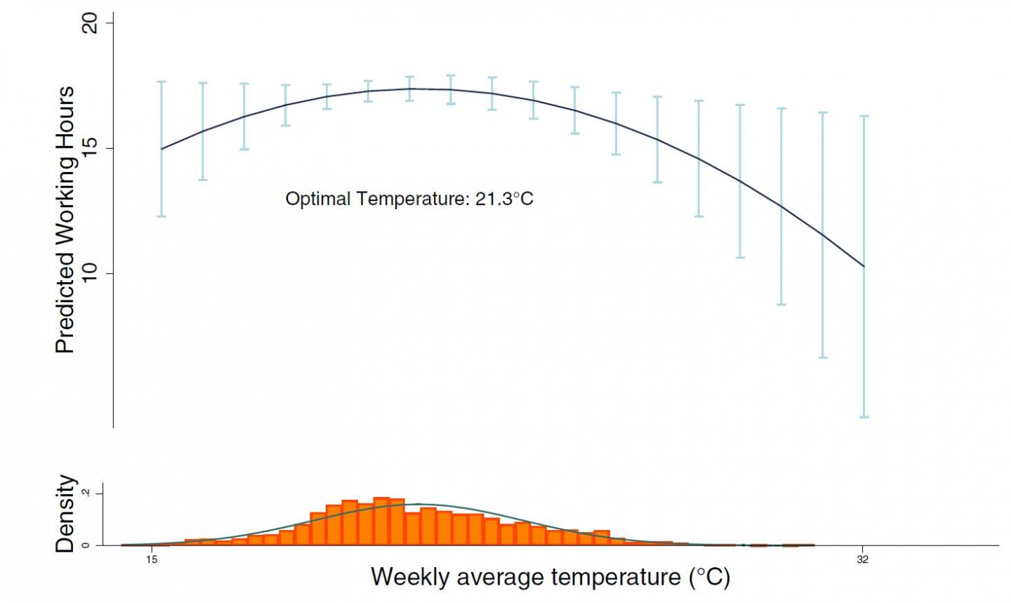 "For the first time, we have provided empirical evidence linking climate change, nutrition and labor supply", explains Shouro Dasgupta researcher at CMCC and RFF-CMCC European Institute on Economics and the Environment (EIEE). "We know that climate change will have an impact on nutrition, and that nutrition plays a key role in improving labor productivity and boosting economic growth in regions where the labor force consists mainly of low-skilled and undernourished individuals. Our study shows that, as temperature increases, initially labor supply does increase; in a mild environment, people can work more hours per week. But beyond a weekly temperature threshold of 21.3°C, number of hours per worker declines due to heat stress".