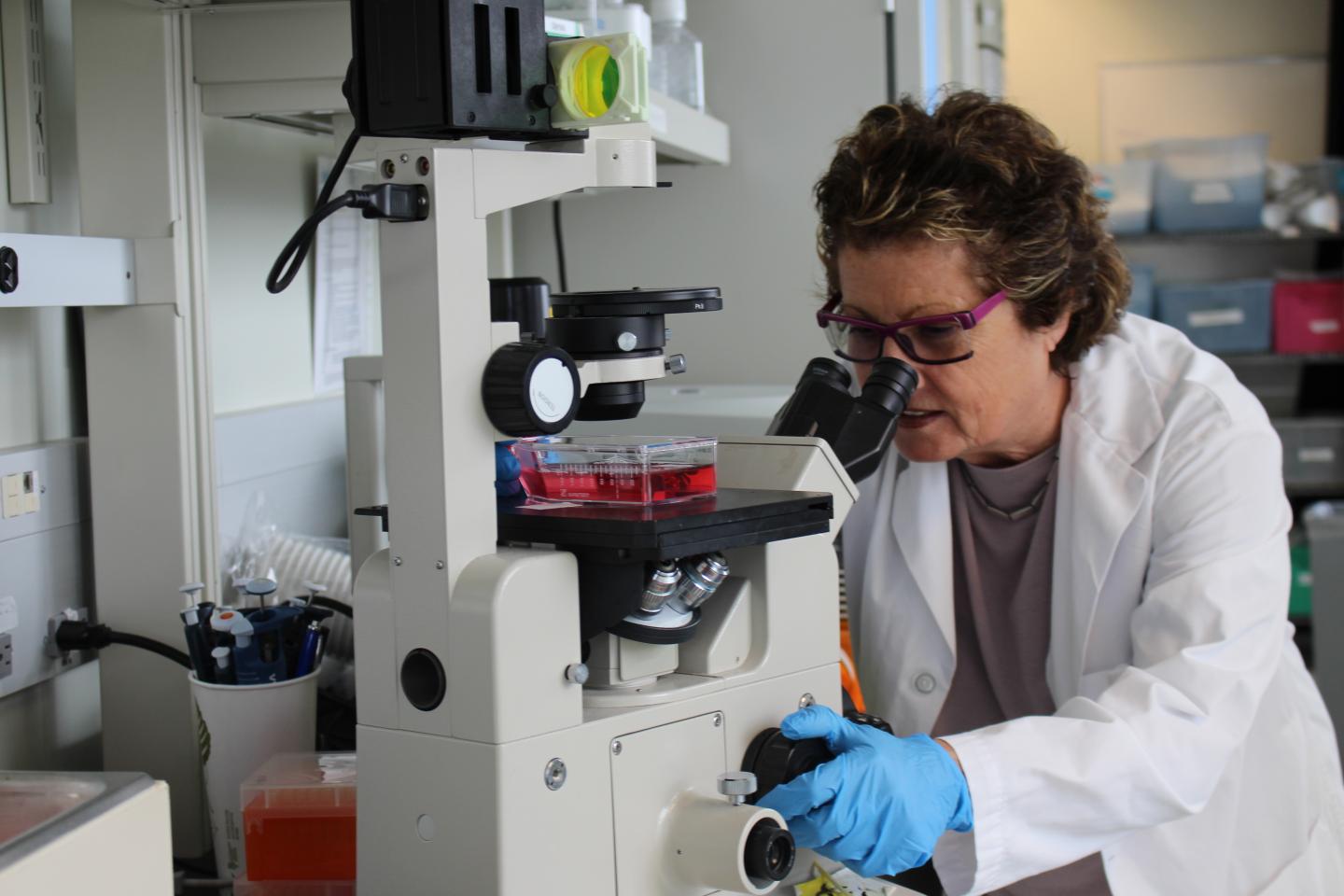 image: Dr. Eleanor Fish working in her lab at University Health Network, Toronto.