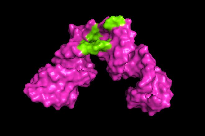 image: University of Maryland researchers developed a method to expand the scope of nuclear magnetic resonance (NMR) spectroscopy. In the example above, the researchers were able to create a 3D image revealing the site on a piece of hepatitis RNA where small molecules such as a drug could bind (shown in green).