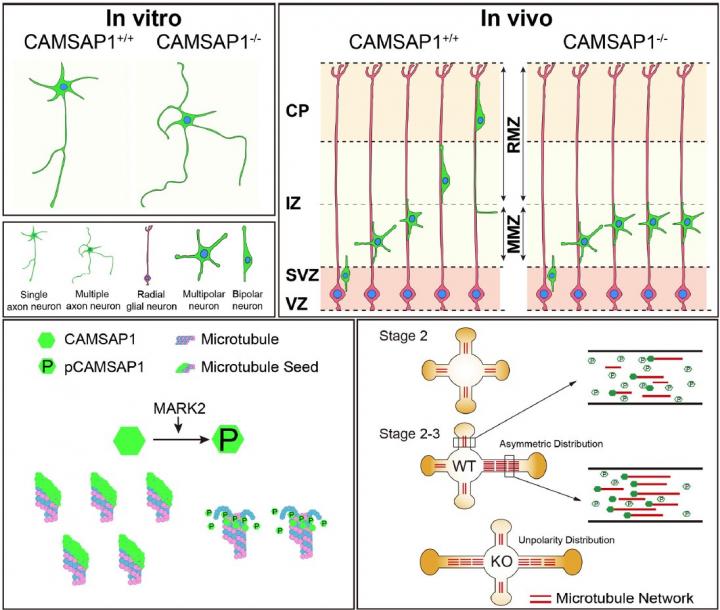In this study, the researchers found that CAMSAP1, a microtubule minus-end binding protein, is an indispensable factor in neuronal multipolar-bipolar transition and radial migration.