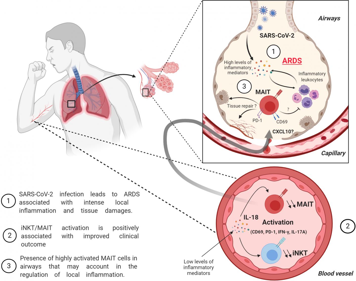 “Altogether, our findings should encourage further studies on MAIT and iNKT cells in SARS-CoV-2–induced ARDS to assess their potential as biomarkers and/or targets for immune intervention strategies,” adds Paget.
