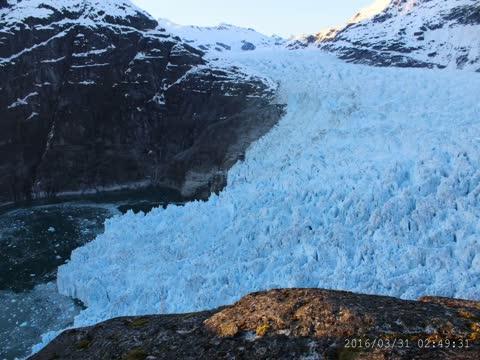 video: Video made from time-lapse photos taken daily from March 31, 2016, to Aug. 8, 2016 from LeConte Glacier camp. The glacier moves from right to left, with the ice front, or terminus, retreating backwards as summer progresses, even as ice flows rapidly towards the ice front.