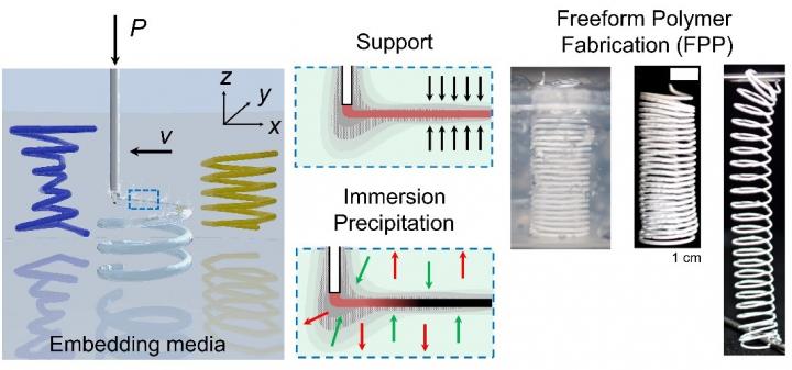 Researchers from the Singapore University of Technology and Design's (SUTD) Soft Fluidics Lab developed a simple method to 3D print thermoplastics using embedded media in freeform manners, termed freeform polymer precipitation (FPP).