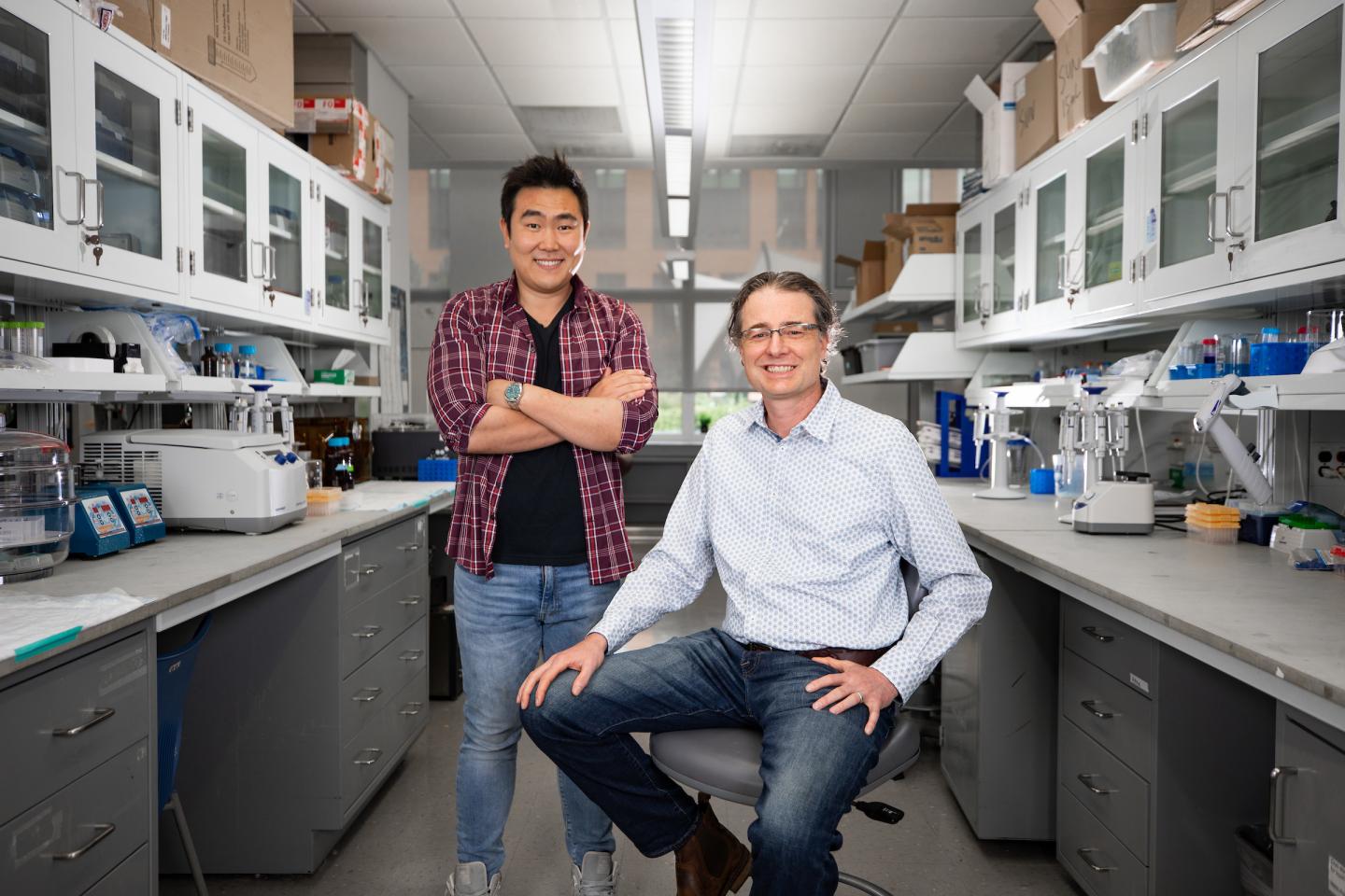 image: Ramon Sun and Matt Gentry collaborated with other researchers to discover an additional type of sugar in the brain. Photo by Pete Comparoni | UKphoto