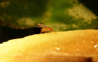 This shows a fruit fly feeding. A genetic study by evolutionary biologists at the University of Toronto using fruit flies (Drosophila melanogaster) showed that chronic food deprivation and lack of adequate nutrition in early life had significant impact on adult behavior and quality of life.