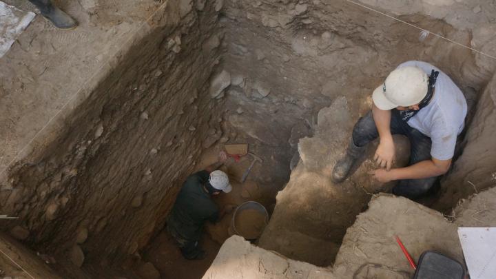 image: Excavations showing the stratigraphic sequence from the late Pleistocene to the modern in one excavation unit at Saki Tzul rockshelter