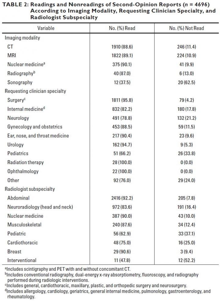 Ultimately, "if subspecialty radiologists and clinicians take proven determinants into account," the authors of this AJR article maintained, "the amount of second-opinion readings with limited additional clinical value may be reduced."