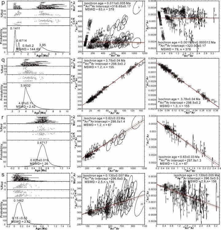 To solve the above issues, researchers applied a Gaussian mathematical model to deal with all 378 original ages from 13 samples (Figure 1). An apparent age-probability diagram, consisting of three independent waveforms, have been obtained. The corresponding isochron ages of these three waveforms suggest there were three volcanic eruptive stages, namely during the Pliocene 3.78±0.04 Ma, early Middle Pleistocene 0.63±0.03 Ma and late Middle Pleistocene to early Late Pleistocene 0.139±0.005 Ma. The new method for identifying stages proposed in this paper within the same timescale has the advantages of controlling variables, reducing deviations, approaching the true age value, weakening the influence of subjective factors and precisely defining the eruptive stages in young volcanic rocks. In addition, by increasing the number of testing data, the final result will be more representative of the real volcanic history, with reproducible and verifiable eruptive stages.