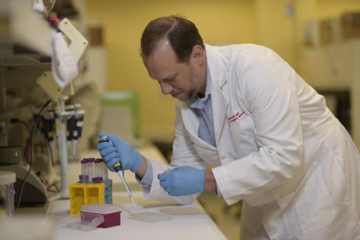 image: Dr. Freishtat conducts ongoing research about genetic clues released from exosomes, tiny nanoparticles released from fat cells, and type 2 diabetes, which may guide future clinical and public health interventions.