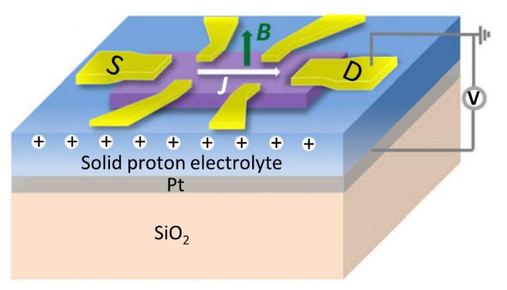 image: Hall-bar device on solid proton conductor used for measurements