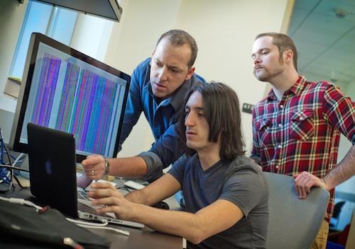 This image shows UT Arlington Assistant Professor of Biology Todd Castoe with graduate students Jacobo Reyes-Velasco and Drew Schield.
