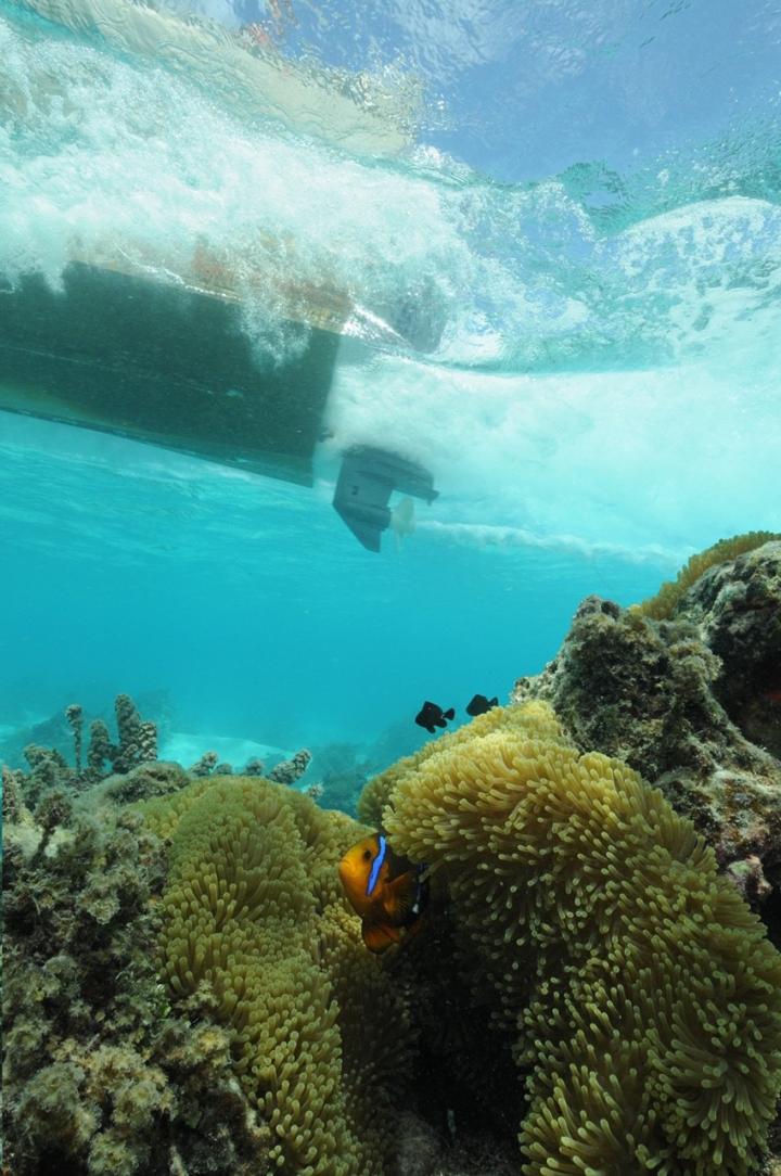 Working on the reefs around Moorea in French Polynesia, an international team of scientists exposed 40 pairs of clownfish to recordings of natural reef sounds or motorboat noise for up to two days. Motorboat noise caused clownfish to hide in the protective tentacles of their host anemone, move less into open water to feed and to be more aggressive towards domino damselfish that also reside in the anemone.