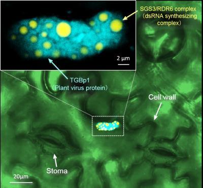 Invading viruses carry genetic material that hijacks the host cell's machinery, fooling it into producing proteins and new viruses. All cells from fungi to plants and mammals employ RNA silencing, a cellular process essential for the regulation of gene expression that also functions as an important defense mechanism. Through RNA silencing, plant cells recognize this viral genetic material, remember and copy it so that other cells in the organism can be warned and destroy the virus. Viruses are known to fight back with RNA silencing suppressors, proteins that inhibit this defense mechanism, but how they interfere with the recording of viral genetic information was unknown. Now, a research team headed by Professor Shigetou Namba and Dr. Yukari Okano in the Graduate School of Agricultural and Life Sciences has shown for the first time that the plant virus protein TGBp1 disarms RNA silencing by causing two enzymes involved in producing copies of viral genetic information to aggregate as inactive clusters in cells surrounded by the virus protein.