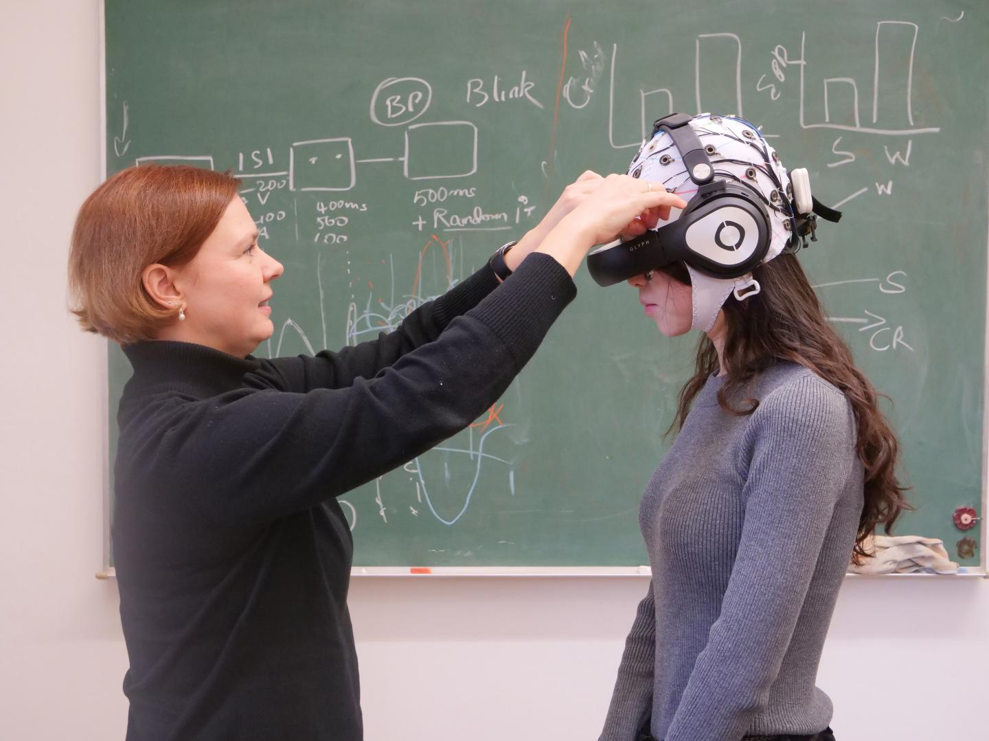 image: With this technical equipment, Dr. Barbara Händel (l.) investigates how movement affects the processing of visual stimuli.