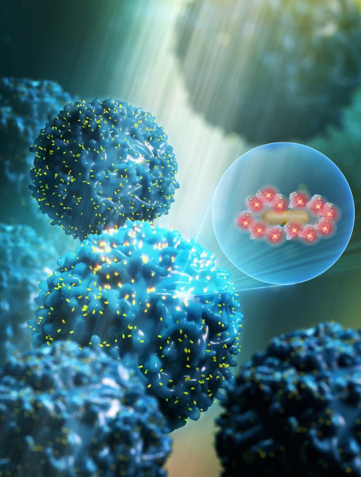 "Increasing the brightness of a nanolabel is extremely challenging," said Jingyi Luan, lead author of the paper. But here, it's the gold nanoparticle sitting at the center of the plasmonic-fluor that really does the work of efficiently turning the fireflies into flashlights, so to speak. The gold nanoparticle acts as an antenna, strongly absorbing and scattering light. That highly concentrated light is funneled into the fluorophore placed around the nanoparticle. In addition to concentering the light, the nanoparticles speed up the emission rate of the fluorophores. Taken together, these two effects increase the fluorescence emission.