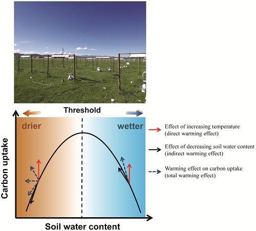 The research team drew the conclusion primarily based on a field manipulation experiment in an alpine meadow on the Qinghai-Tibetan Plateau. They found that land carbon uptake increased when soil water content (SWC) was below its optimum but decreased above the optimum.