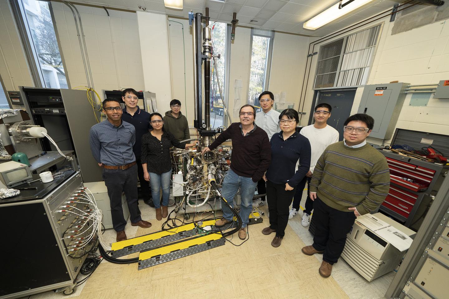 image: Brookhaven Lab and Stony Brook University (SBU) members of the research team. First row, left to right: Sanjaya Senanayake (Brookhaven), Mausumi Mahapatra (Brookhaven), Jose A Rodriguez (Brookhaven), Ping Liu (Brookhaven) and Wenjie Liao (SBU). Second row: Ivan Orozco (SBU), Ning Rui (Brookhaven), Zongyuan Liu (Brookhaven) and Erwei Huang (SBU).