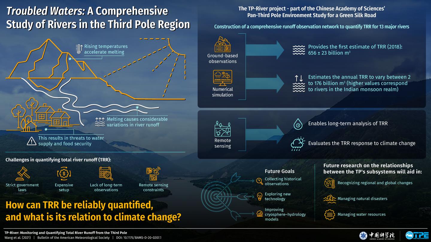 The Third Pole centered on the Tibetan Plateau is home to the headwaters of multiple rivers in Asia. Despite the importance of these rivers, scientists have not known exactly how much water flows out of the mountains of the Third Pole as river runoff.
