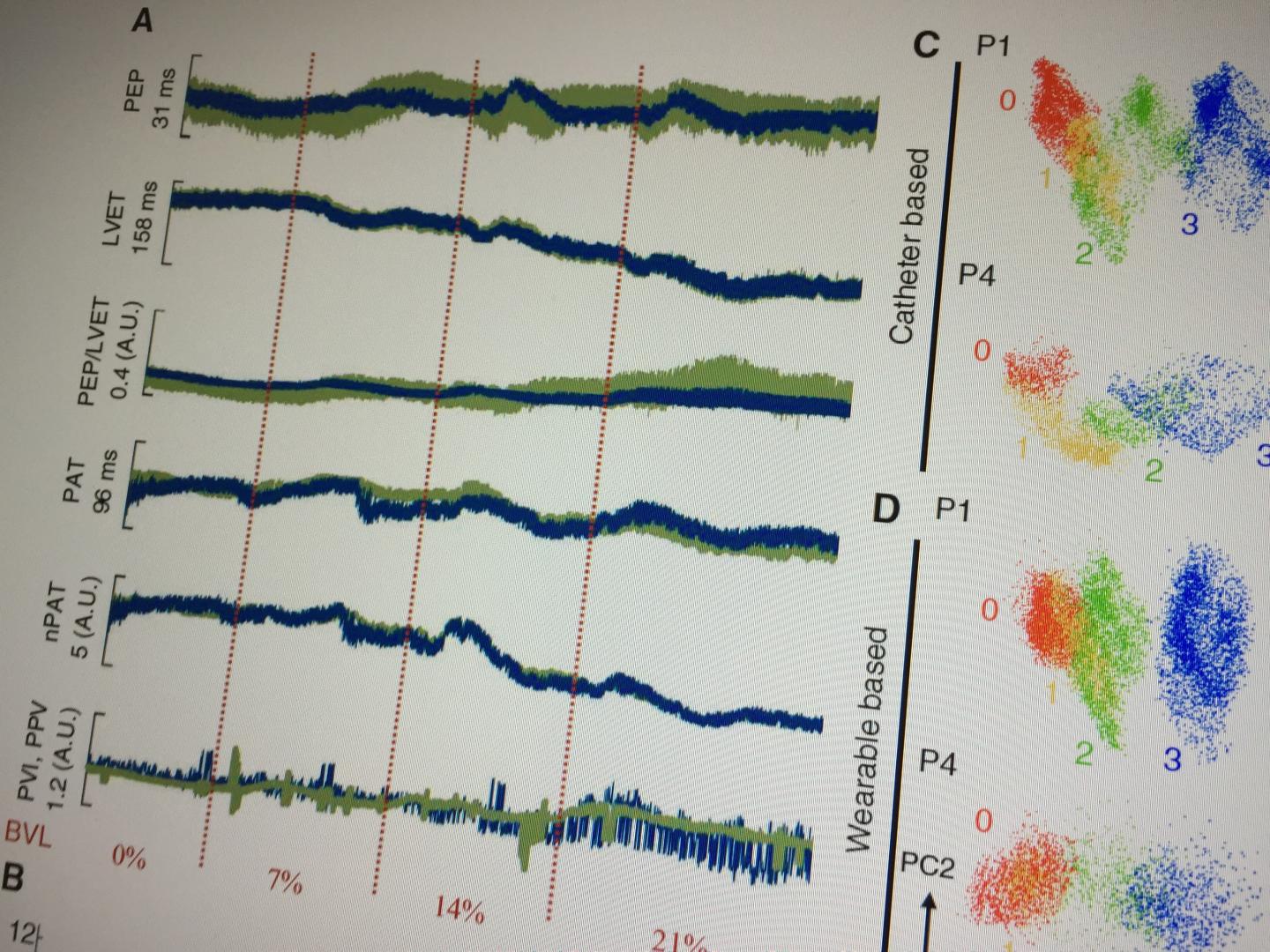 "The most important lower-level feature we found to be important in blood volume status estimation were cardiac timing intervals: how long the heart spends in different phases of its operation," Inan said. "In the case of blood volume depletion, the interval is an important indicator that you could obtain using signals from a wearable device."