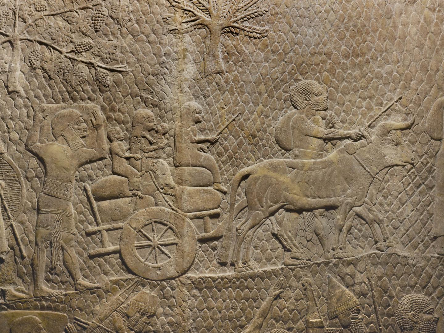 image: Deportees after the Assyrian siege of Lachish, Judea (701 B.C.E.). Detail from bas-relief removed from Sennacherib's 'Palace Without Rival,' Nineveh, Iraq, and now in The British Museum.