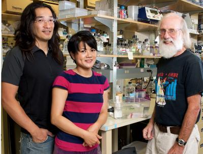 This image shows, from left, Salk researchers Gerald M. Pao, Wei Zhu, and Tony Hunter.