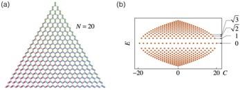image: a. FSL with site-varying coupling strengths. b. Energy spectrum of the FSL.