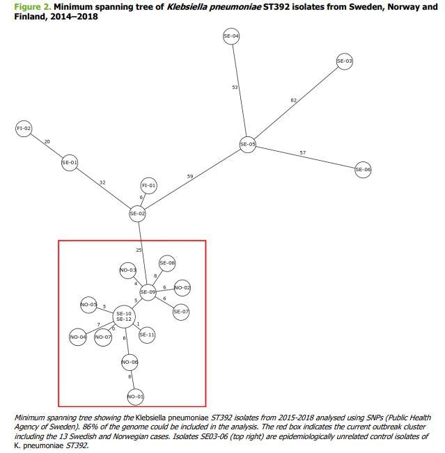 Thirteen patients with OXA-48-producing Klebsiella pneumoniae ST392 have been reported by Sweden and Norway between January and April 2018 - all returning travellers with prior hospital admission in Gran Canaria, Spain. Whole genome sequencing showed tight clustering between the bacterial isolates from the cases.