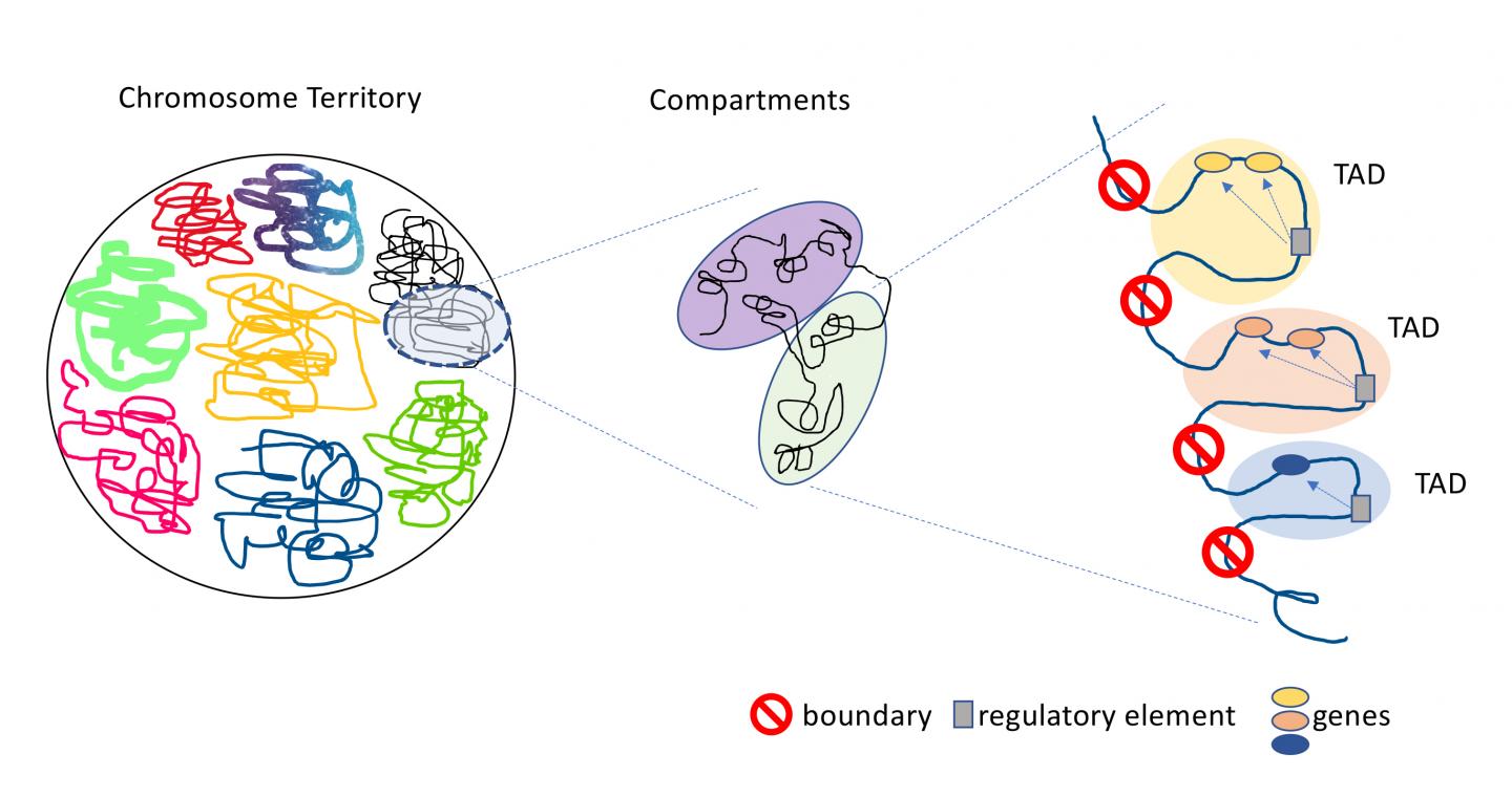 image: Topologically associated domains (TADs) are distinct regions of the genome with strict boundaries that keep the domains from interacting with genetic material in neighboring TADs.