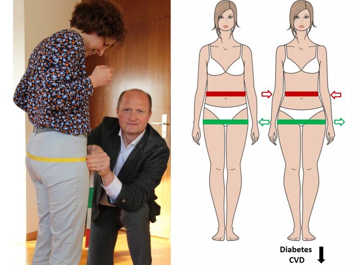 In a Lancet Diabetes & Endocrinology review article Norbert Stefan from the German Center for Diabetes Research (DZD), the University Hospital of Tübingen and the Boston Children's Hospital, highlights why and to what extent a large hip circumference, an estimate of increased fat mass in the lower part of the body, protects from type 2 diabetes and cardiovascular diseases (CVD). He also provides new information that a high amount of hip and leg fat mass is very important to retain metabolic health. In addition, he discusses lifestyle modifications and pharmacological interventions that improve body fat distribution and exemplifies how a focus on lower body fat mass helps clinicians in risk assessment and patient communication.