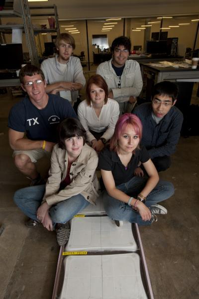 Team Equiliberator combines engineering, computer science and art students in a project that uses Wii Balance Boards, a handrail sensor system and custom game software to help patients at Shriners Hospital for Children-Houston develop their balance. Clockwise from left: Matt Jones, Drew Berger, Jesus Cortez, Nick Zhu, Irina Patrikeeva, Michelle Pyle and Jennifer Humphreys.