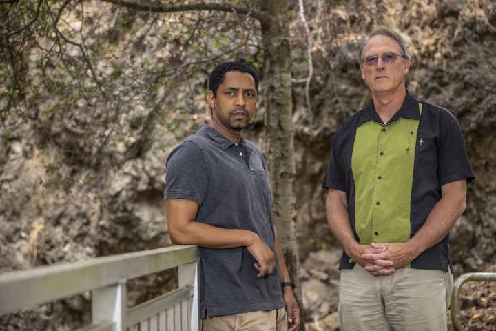 image: Berkeley Lab scientists Zelalem Mekonnen (left) and William Riley co-authored a study on how wildfires will affect forests in Alaska.