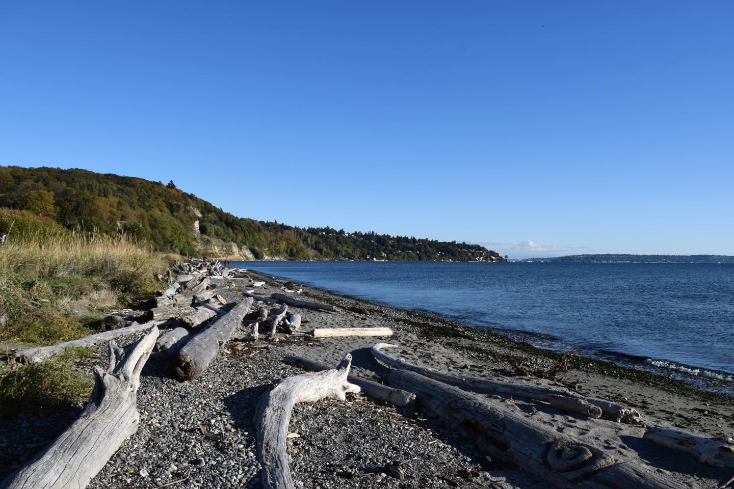 image: Beachfront along Puget Sound in Discovery Park, Seattle, Washington.